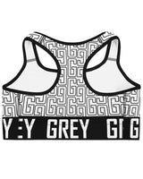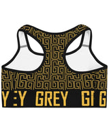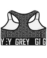 Premium and moisture-wicking material that stays dry during workouts or working around the house. Stylish Gg design belongs to GREY.style's latest collection. The bra has support material in the shoulder straps, double layer front, and a wide elastic band to ensure constant support.